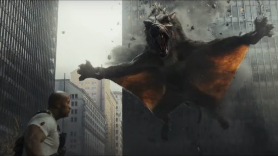 Then Jeffrey Dean Morgan shows up as “ill-defined government person” and drags Dwayne Johnson and Naomie Harris along with him as though taking down the giant monsters were their responsibility. Some other things happen and then we get a shot of The Rock with a grenade launcher and George squaring off against the wolf and the alligator.