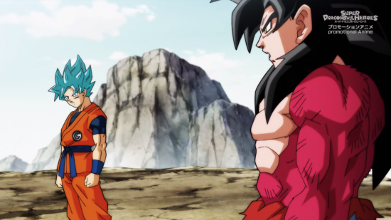 The series villain”Fu” shows up, claiming to be Trunks’s friend and lures the trio to the Prison Planet too, where they find themselves trapped. In order for them to escape, they need to collect seven special Dragon Balls, each held by a powerful enemy. So, a video game plot basically. Then the “Xeno” version of Goku shows up, who proceeds to turn Super Saiyan 4 and fight regular Goku in his Blue form.