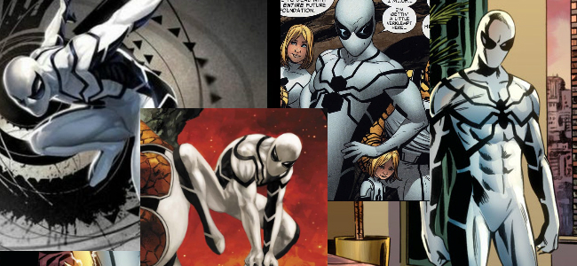 A costume made by Reed Richards during a period where the Fantastic Four were down onea Human Torch and had stopped going by their old name in favour of the “ Future Foundation”. They gave themselves a very different look, with starkly contrasting white and black matching costumes. In this process, Peter got himself one too.
