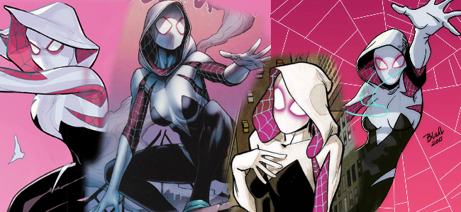 Thanks to her popularity after the multiversal mash-up that introduced her, she ended up getting her own run of comics jumping between the mainline 616 universe and her own. As well as the added benefit of being a cute girl, her popularity is bolstered by her cool costume design. I seem to have a thing for stark, contrasting colours. The hood and glowey eyes are cool too.