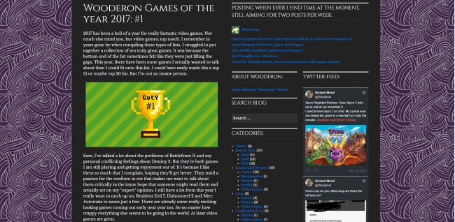 As I started compiling my list of video games I’ve played in 2018, I realised that a significant portion of the games I’ve invested my time and enjoyment into have been out for over a year. Anyone who reads my blog with any regularity will probably already know which ones I’m talking about.