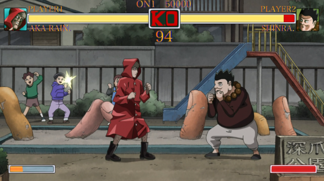 After a confrontation with a red coated stalker who turns out to be a pervert who likes flashing people, in the form of a Street Fighter II parody, our tubby esper confronts an urban legend that turns out to be a little less fabricated than the rest.