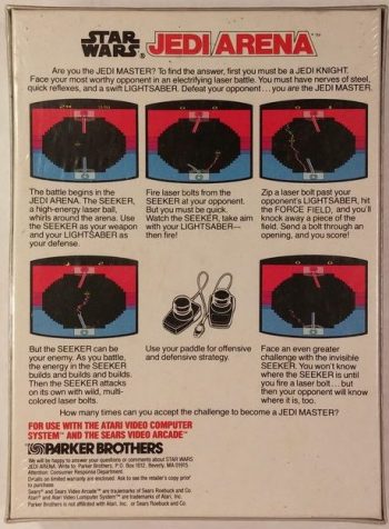 Released in 1983, amidst the Parker Brother’s deluge of Star Wars games over a two year period, Jedi Arena was unique in that is was a game with a solely multiplayer focus. Like the two that came before it, the game worked to very loosely recreate an aspect from the movies, but this time focused on creating an experience focused on two players competing against one another.
