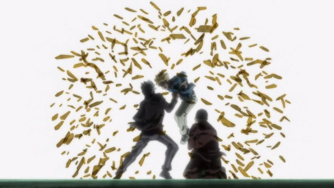 Outside of this, the episode is packed with a number of esper fights, between a government embedded agent and his lackeys trying to overthrow the boss, Mob and a couple of nobodies and Teru getting his ass kicked by a happy-go-lucky blind guy who is kidnapping the Prime Minister.