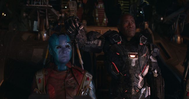 Her conflicted performance, as she plays the sadistic, desperate to please Nebula of the past and the distant, wanting to reconnect with her sister Nebula of the now at the same time, brings Gamora back into events, while also kicking off the biggest, most epic action sequence in the entire franchise.