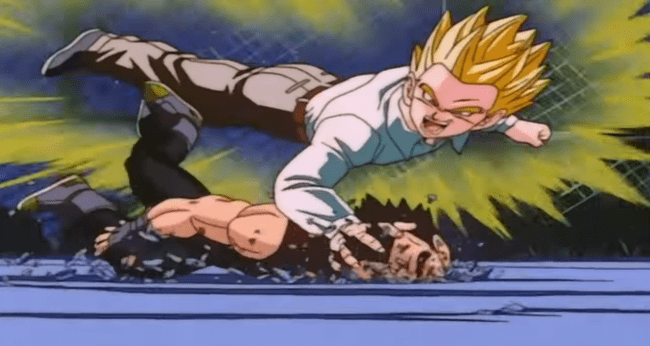 This was always especially jarring during fights, between Goku and Rildo, between Gohan and Goten and then several times in the final battle between Goku and Baby. During these battles, an episode with Goku on the ropes, seemingly struggling against a tough opponent. Finally feeling like he’d met someone who could push him a little. “Finally”, I’d think. Goku’s getting serious.