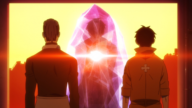 A lot happened in this episode; we saw the continued and the conclusion to the battle between Shinra and Rekka. We learned that Rekka is working for someone he calls the Evangelist. Adding to the religious, cult-like overtones of the series. Their goal to burn everyone in the world.