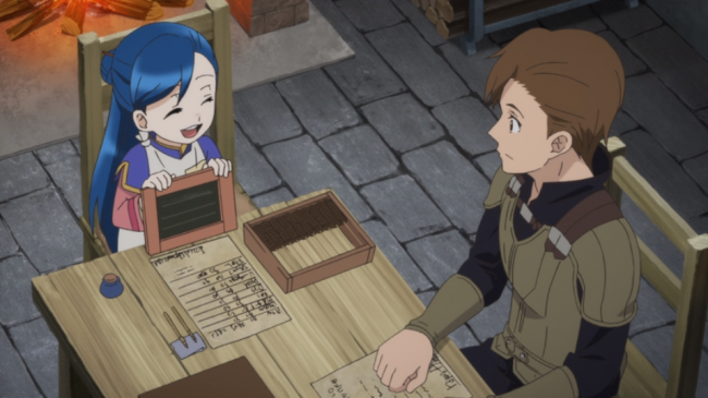 Myne certainly has one up on everyone around her in this world, being an educated, adult woman who has spent most of her life reading everything and anything she can stick her nose into before now. But is oftentimes held back by the body she now finds herself in, thus having to rely on the friends and family around her to enact half of the things she is trying to do. It gives the show a much slower pace that I really appreciate, there’s more time to slowly sink into this new world with Myne and see all the small changes she makes to her life by bringing using her modern day knowledge.