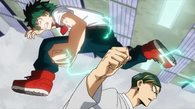 While I could easily say it’s because of the cost required to get there, in reality, the reason behind this is because, for once, Deku is not the underdog in this fight. Looking back at all of Deku’s major fights before now, he has been the underdog, needing to prove himself despite the handicaps of his lack of experience, ability or the fact that his own quirk hurts him worse than his opponent can. (Even All Might’s two major battles have painted him as an underdog despite how ridiculously overpowered has has been painted as being.)