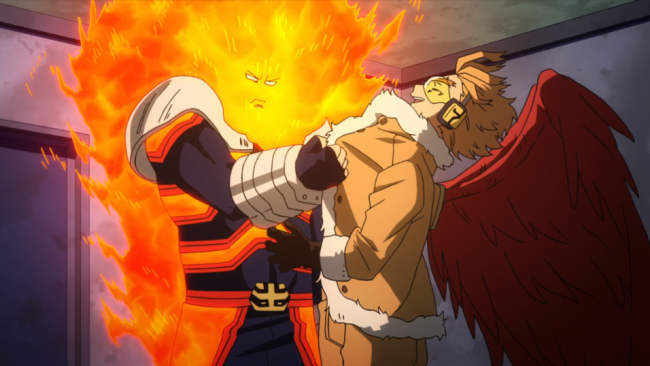 After the fact Endeavor, blows up at him pretty literally. Hawks tries to blow it all off as trying to motivate the number 1 hero into being the new symbol of peace the country needs. It’s interesting, All Might himself told Endeavor that there was no need for him to try and emulate him, and just be his own best self he could be.
