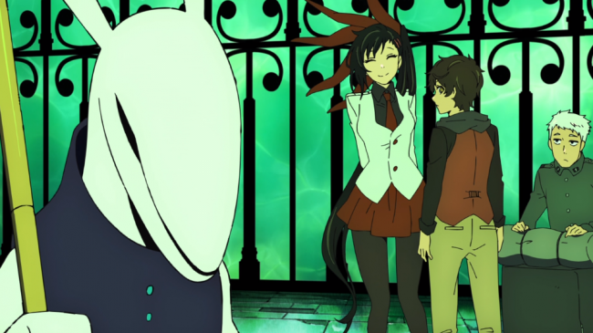 Once in the tower proper, Bam finds himself in a wide open field. A small drone floats above, informing him and the 399 other individuals in this space that the first test is about to begin, and will conclude when there are only 200 souls remaining. Thus chaos ensues as we get the first anime adaptation of a battle royal video game. (Don’t correct this)