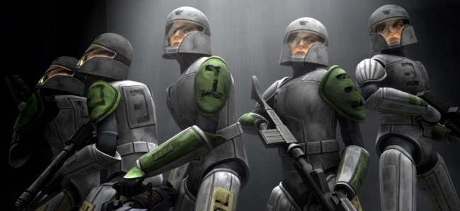 This is a great episode, one that continues to focus on the clones and their individuality as people and not just faceless cogs in a great machine of war. The tone is one of camaraderie and coming together, only mired by the reality that most of them will ultimately die.