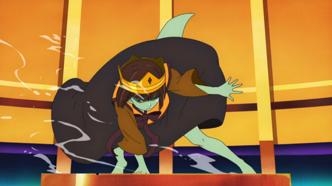 The battle escalates through, as the sleepy guy who has been shuffling around in the background for the past few episodes finally perks up and starts using this water based power called Shinsu, causing Anak to freak out and her sword to turn into a giant vine/tentacle whipping monstrosity.