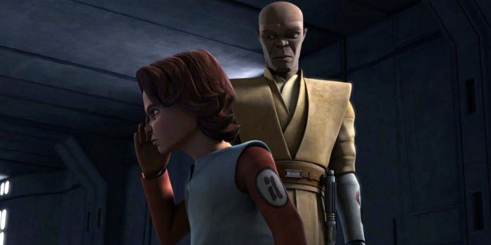 However, the stoic Jedi doesn’t give them the satisfaction of even showing up. As it’s Plo Koon and his not-Padawan Ahsoka Tano who cockblock the bounty hunters and deal with them in much more efficient fashion than either Mace or Anakin could in two episodes.