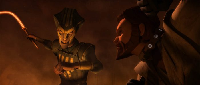 It’s the exact opposite decision to what Ahsoka made earlier and kind of undermines Anakin’s very status as a Jedi. Especially when he ends up getting no information out of the Queen before he’s forced to blow his cover in order to rescue a captured Obi-Wan. In which is a pretty charming homage to the barge execution scene from Return of the Jedi.