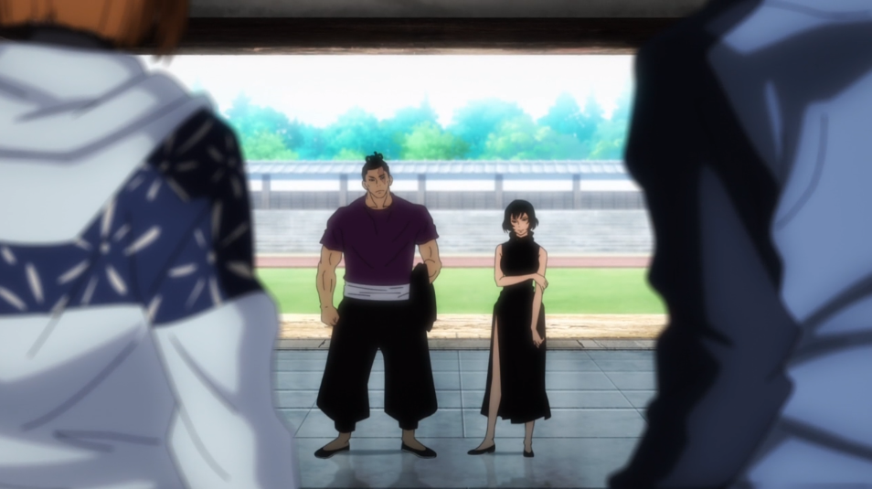 In terms of what’s going on in episode 8; With the Toyko/Kyoto tournament looming ever closer we spend some time with Fushiguro and Kugasaki. While on break from their training, they’re accosted by some students from the rival sorcerer high school. A meat slab of a man named Toudou Aoi and Maki’s twin sister, Zen’in Mai.