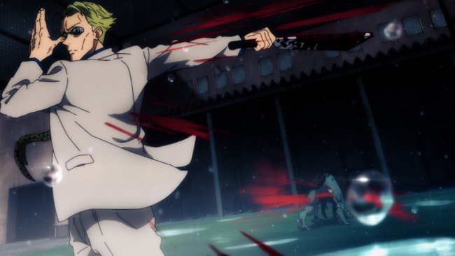 Which, coupled with the fake Frankenstein movie the characters were watching when the episode started makes sense. Like Doctor Frankenstein, this guy seems to be bent on creating new life out of old life. Although he seems to glee in making inhuman monsters out of former people. Something that shakes Itadori, upon seeing this Kento lightens up on the kid a little and starts to treat him a bit nice to bring him out of his funk.