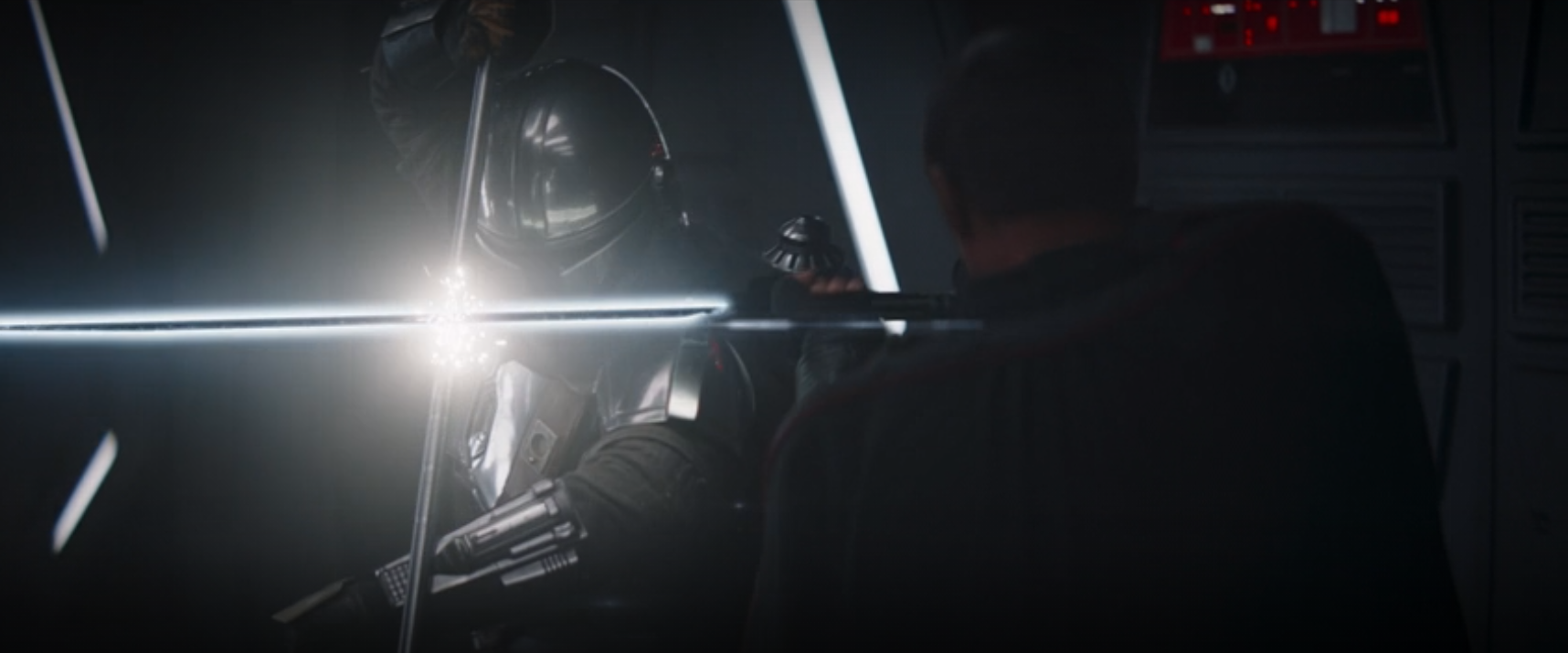 As everyone saw coming, we get a duel between Din using his spear and Gideon using the Darksaber. It’s a great if brief battle that ends with Din on top, sparing Gideon’s life. Action which has a consequence I’m not sure any of us would have seen coming, causing a potential rift between Din and Bo-Katan. It’s an interesting flipping of the script actually. The last time these two encountered one another, Din was the one getting berated for being tied to dogma and tradition of the Watch.
