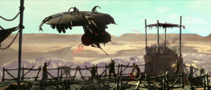 It seems a little cold to me, but I suppose it’s a “teach a man to fish” kind of message rather than them being this disconnected political entirety that the Jedi seem to increasingly turning into. In the palace, Saw is being tortured by Dooku’s man/droid on the inside. Upon seeing this, the leader of the planet’s militia; General Tandin debates the effectiveness and merits to the Confederacy’s approach to leadership and military strategy. Right from his introduction, you can see he’s man of principle, and the new way of doing things doesn’t sit right with him.