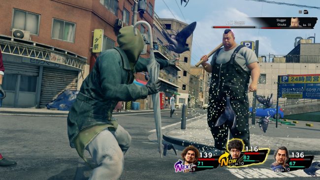 As the story within the game plays out, the characters around him playfully lean into Kasuga’s obsession with the game and start using video game logic and terms and applying them to real-world situations. Something that cutely plays into the fact that his game functions using those very mechanics, but also help Kasuga’s delusions increase, altering the state of the world around the player during combat.