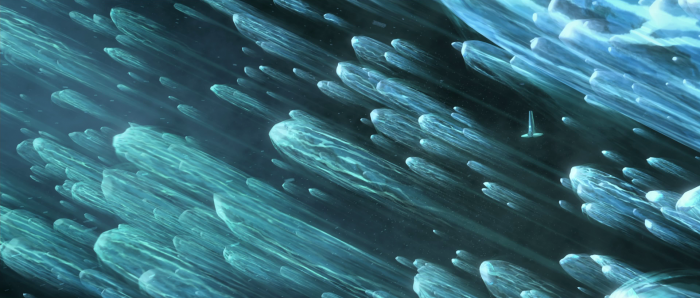 Albeit ones that were digestible to a younger audience. From a visual standpoint though, it was very cool. From the blue and black comet storm in the beginning that contrasts with the orange and white void in the second half it was certainly unique enough that I stands out amongst many of the episodes I’ve seen over the past month or so.