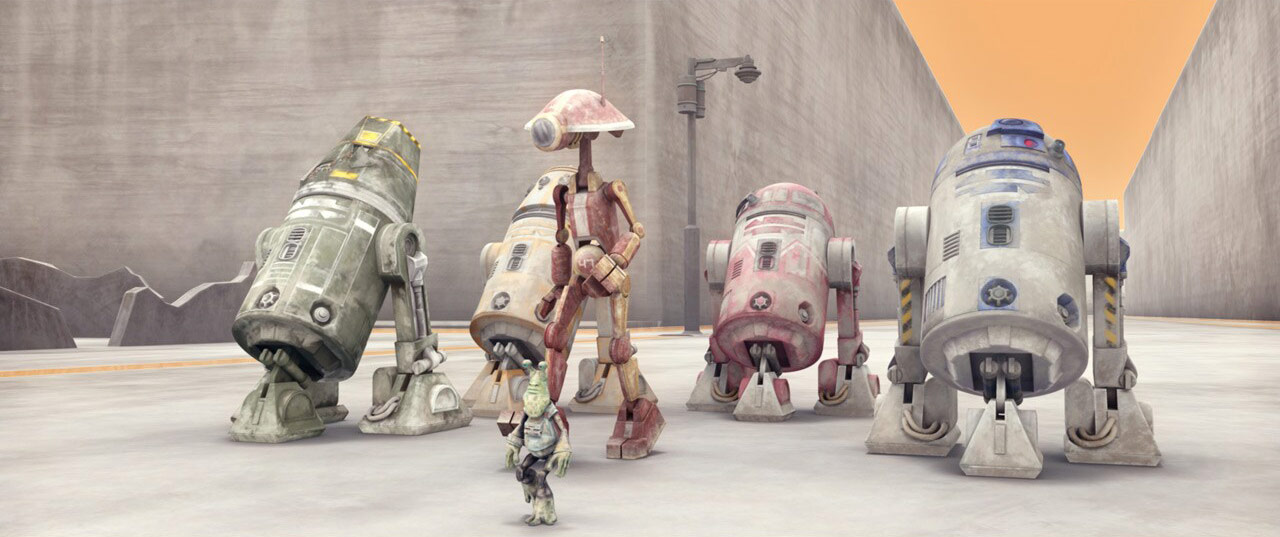 Meanwhile, the astromechs manage to discover that there is some kind of Separatist presence on the planet, spotting some battle droids out on patrol.