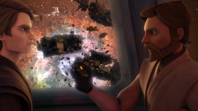 The cruiser is packed with that Rhydonium the Separatist were minding on Abafar, and they plan to crash the ship into a space station hosting a Republic strategy meeting, where a ton of high ranking Republic officials and Jedi will all be gathered. As these episodes have worn on, I have come to like Gascon less and less. He’s full of talk and bluster, but seems very quick to try and wash his hands of this situation before realising the Separatist target.