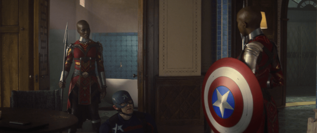 I do like that Walker wrestles with the idea of taking the serum or not. It’s obvious that the good man is still in there, but his growing frustrations at getting his ass kicked, by the super-powered Flag Smashers, then by the not super-powered Dora Milaje really forces his choice, by the time we see him walk into a trap in which the Flag Smashers intended to kill Captain America, he has already taken the serum and become an equal to the previous Captain America… at least in terms of strength.
