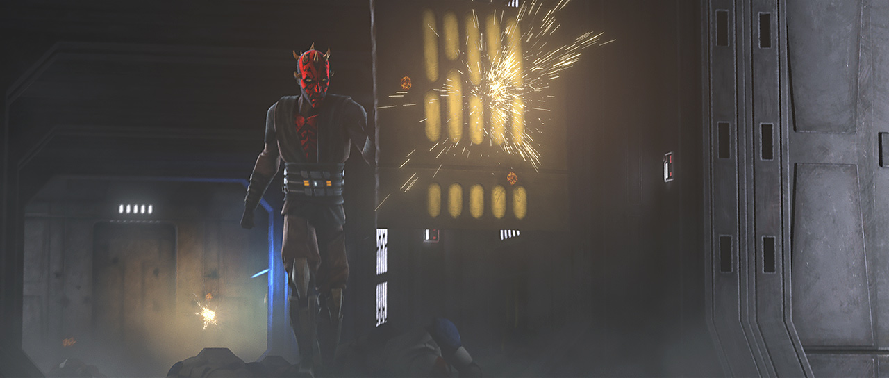 The final sequence sees Maul steal the ship Ahsoka and Rex were planning on, as well as the dramatic final stand where the pair narrowly escape on a fighter with their lives as the cruiser they were on crashes onto a remote moon thanks to Maul’s actions after being released.