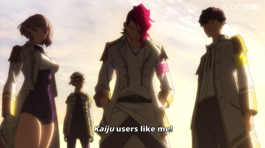 Even when they’re piloting the robots they seem only relatively perturbed by the battle they’re participating in. They underplay everything, which in direct opposition to the “kaiju users” that crash into their lives and act much more like the over the top anime characters you’d expect to be in a series like this.