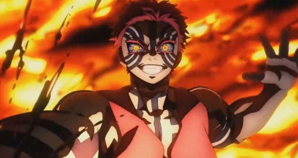 It’s only through cutting his own arm off does Akaza manage to escape bursting into flame from exposure to the rising sun. An act that frustrates Tanjiro to the point of raging out. He yells after the demon, calling him a coward and the loser of the fight, something that irks the hyper competitive Akaza, but not enough to get himself fried. Tanjiro even hurls his sword at him, impaling the demon with minimal effect.