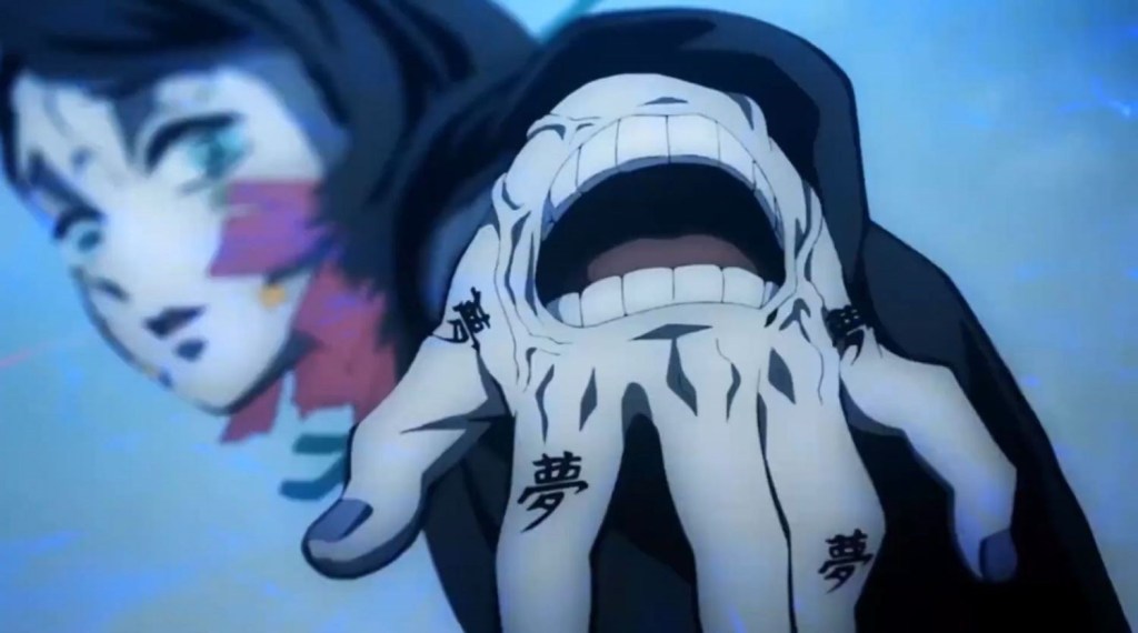 Shortly thereafter, we realise that some of his heroics were a dream and the slayers had all been lulled to sleep by Enmu’s powers. Manipulating a bunch of kids into entering the subconscious of the heroes and destroying some part of their core, essentially killing them in their sleep. It makes this demon a dangerous opponent, as he can kill you without you ever even realising you’re being attacked.
