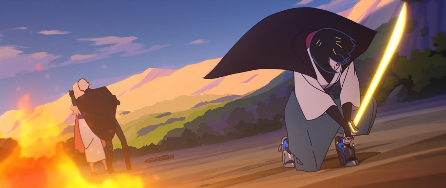 The Village Bride comes to us from Kinema Citrus. The studio being the anime adaptations of The Rising of the Shield Hero and Made in Abyss, among many others. And boy is this a clean looking episode. It tells us a story from the perspective of a woman only called “F”. She’s a survivor of Order 66 and the tragic loss of her master has left her lost and empty inside.