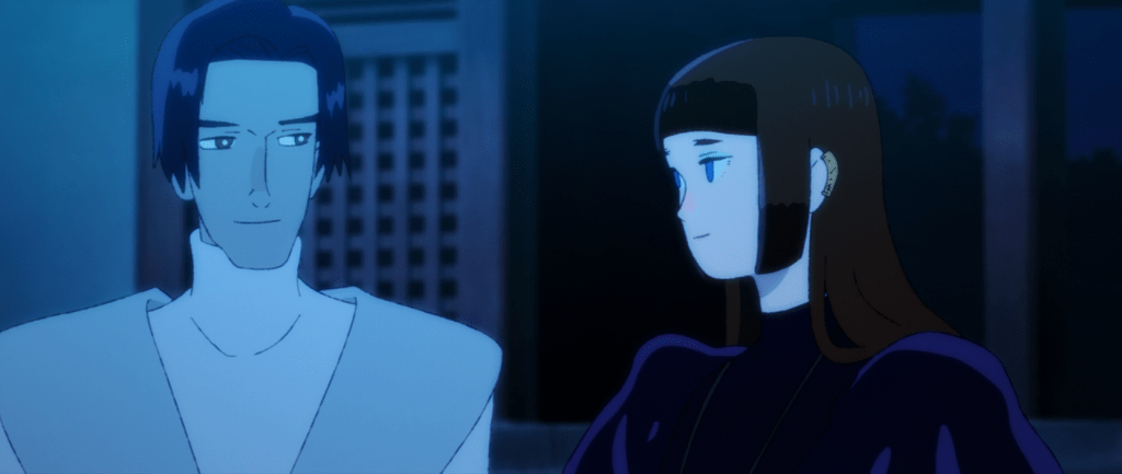 The second episode from Science Saru, Akakiri is pretty stylised episode showing the story of the Jedi Tsubaki returning to the home of Misa, a former princess he once met and grew to have feelings for. Tsubaki is a shell of his former self, plagued by visions of a death in the future, to the point that he has began to look like some drunken drifter.