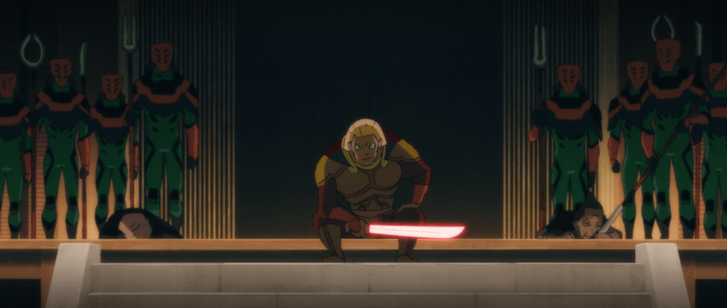 Misa’s planet has played host to a coup by her Sith Aunt Masago, and Misa herself has become a fighter to try and reclaim her world. After a long and perilous journey to the palace, Tsubaki has is confrontation with Masago, only to be easily defeated by her.