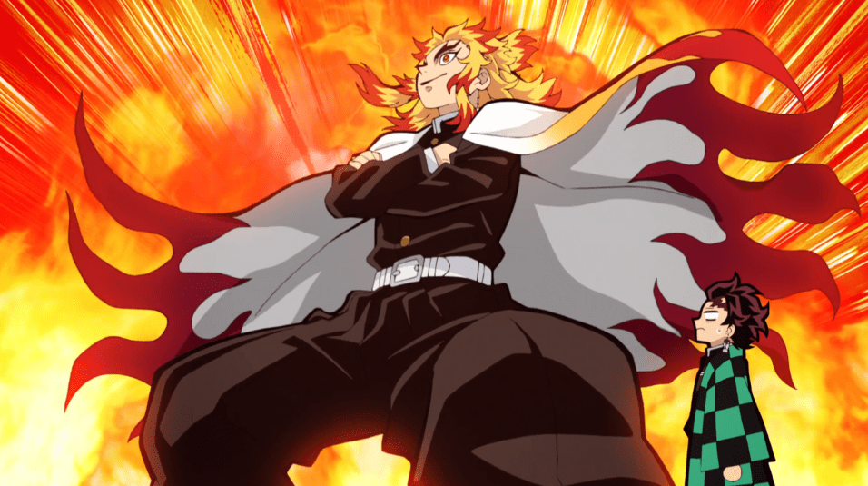 Upon meeting, and commenting on Rengoku’s strange habit of just staring off into space when he’s talking to someone, Tanjiro gets right to the point and asks about his father’s fire dance he manifested during his battle with Rui in the spider forest. A quest that seems to have fallen flat on its face at the very first hurdle. Rengoku excitedly announces he’s never heard of any “Hinokami Kagura” fire dance. Instead he just offers to take Tanjiro on as an apprentice and teach him Flame Breathing.