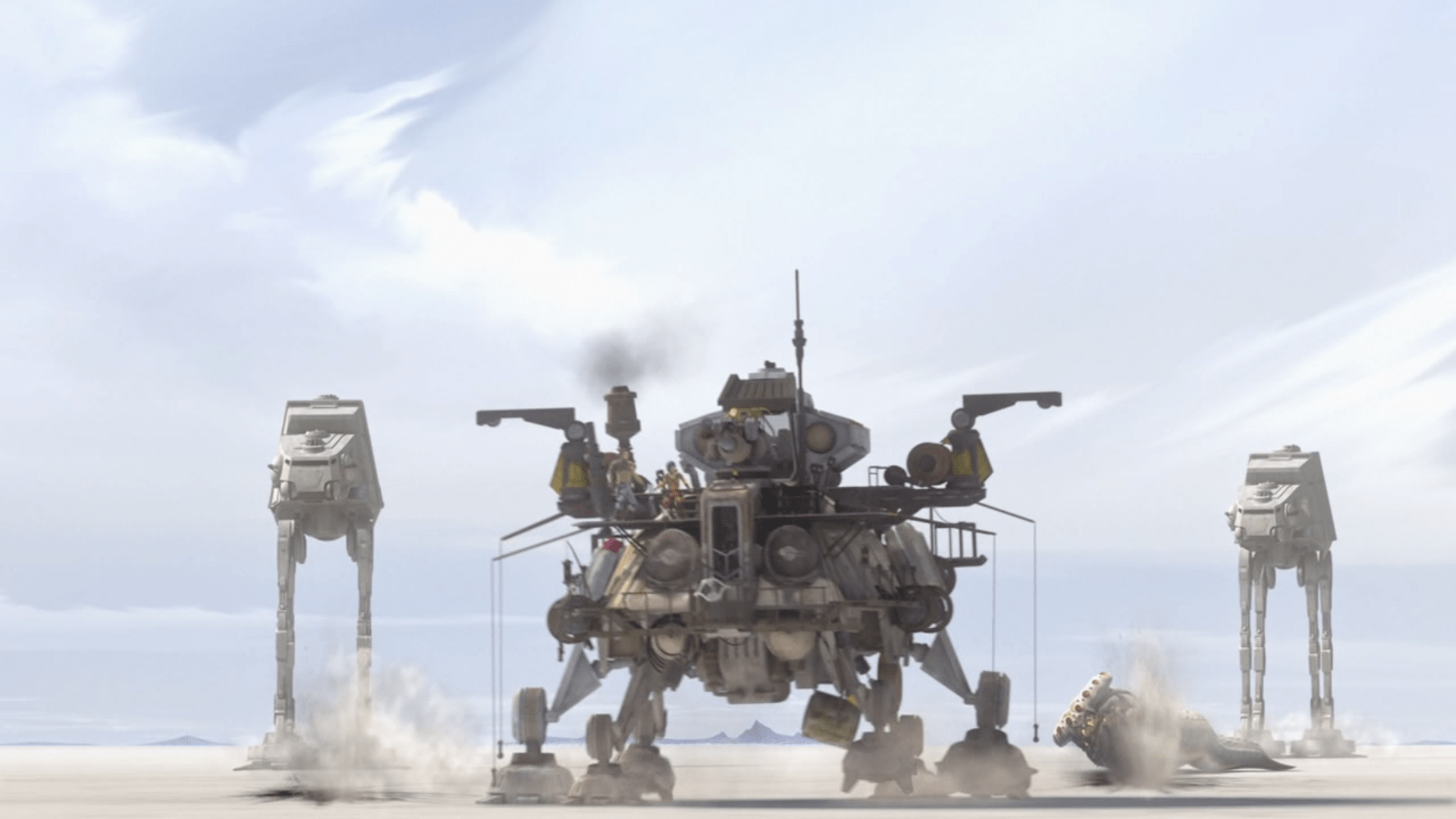 If the previous episode was tipping its hat to Jaws, there is something more of a navel warfare feeling to this second part in the story. The walkers out on the wide open sand plains of the planet gives a real oceanic feeling to the whole affair. After Rex gives it large to Kallus, the agent opts to send three AT-AT Walkers down to the planet to destroy the Clones rather than just blast them with an orbital strike.