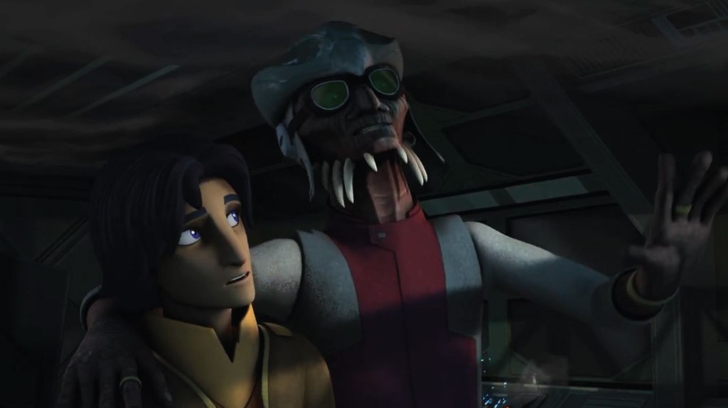 It’s been a while since I’ve seen Hondo, and his design is so different, I know it’s been 15 years, but he doesn’t just look older. He looks like a different person. I know Rebels has a slightly different art style, but Ahsoka and Rex look the same, or at least recognisable as who they’re suppose to be. Well, with that voice is impossible for it to be anyone else.