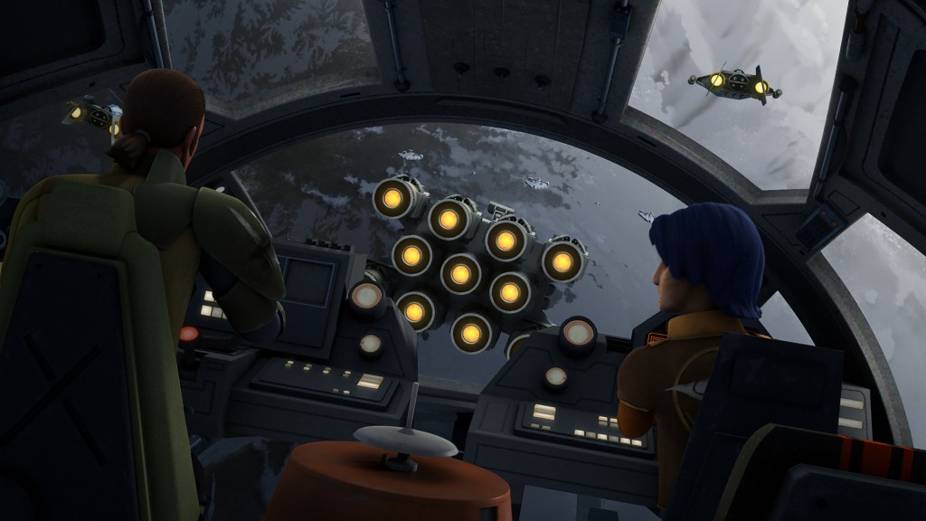 He initially rebukes Hera. For some reason. Only to change his mine when she speaks about her past for the first time this in this series. How she watched the Republic ships during the Clone Wars and was overcome with a desire to be up there. A compulsion to be in the sky, and it’s where she truly feels like she can be herself. So much so that she left her family on Ryloth to fight the Empire.
