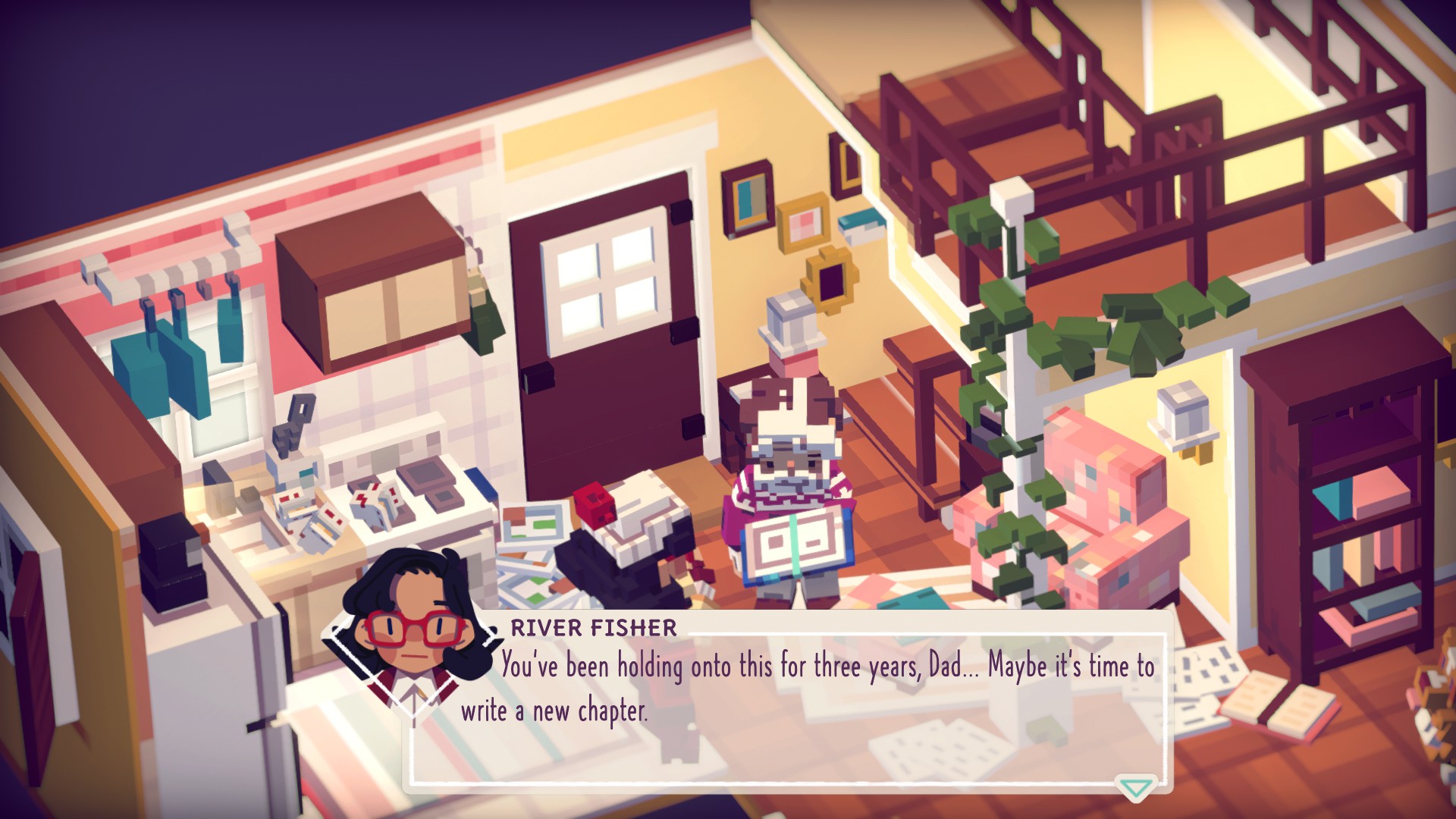 Well, that is until the game suddenly cuts to three years later to find that your partner has vanished and you’re been living in a state of depression ever since. I mean, I don’t know why the game doesn’t just come out and say they’re dead, I mean that’s how it treats them throughout. I don’t know. It’s only when your daughter shows up, having quit her job and moved to Moonglow Bay, to get your out of your rut.