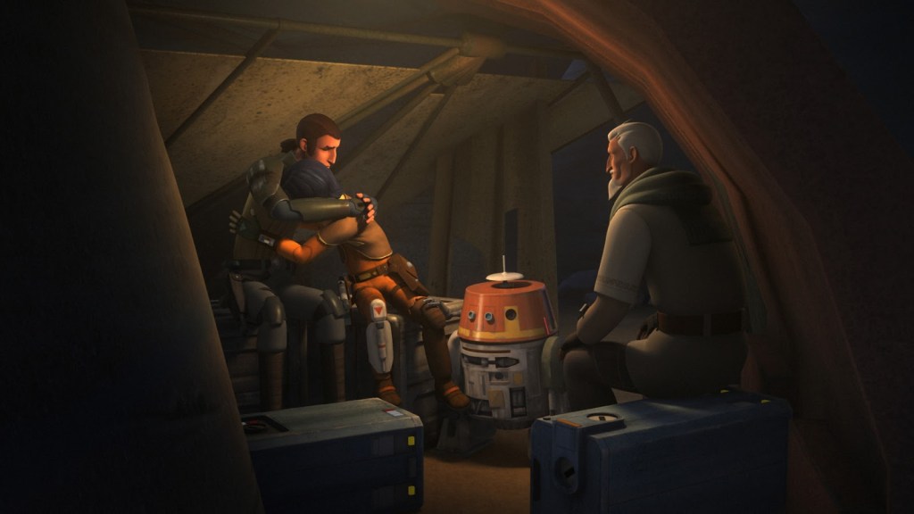 The vision concerns the fate of Ezra’s parents, which has been one of his major ongoing story threads since the series began. Ezra wakes up in a panic and realises there is something happening concerning his parents, but more importantly, they’re alive. When he comes to Kanan and Hera about this, it feels like it’s finally time for Hera to let the cat out of the bag.