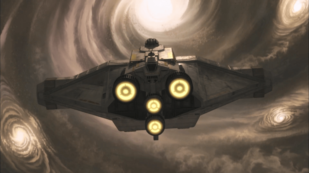 I am a weird nerd who really enjoys the more “mundane” aspects of world creation and the bones of how the Star Wars galaxy works and an actual place. Like hyperspace travel for example. In the lore, most ships travel through safe, established hyperspace routes. Which are like highways that starship captains know are safe. In this instance though, Hera is making almost blind jumps out into space, meaning there is no telling them what could be in their path.
