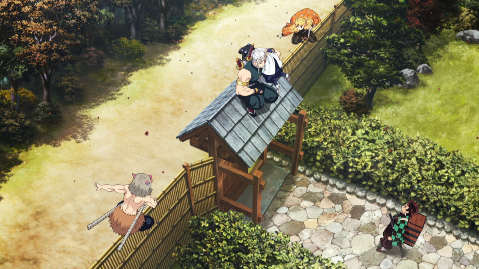 At this point, time starts to move forward. Over the following four months, we see Tanjiro, Inosuke and Zenitsu using the estate as their base of operations as they are sent out on various missions. Even Zenitsu manages to have overcome some of his fears and it able to complete a number of missions all on his own. No doubt the thought of Nezuko being the thing urging to come back every time.