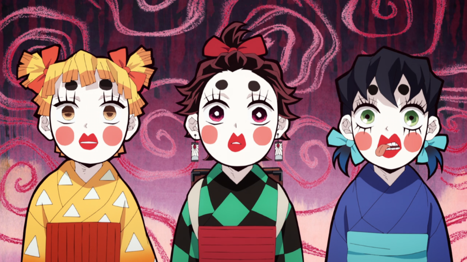 For all the love and respect the trio payed to Rengoku right off the bat, Uzui is getting no esteem at all, getting razzed by Zenitsu incessantly. Inosuke is also treating him like crap, but he generally does that to everyone. It makes it so Uzui’s default expression is pissed off, rather than that cocky smile he seems to have throughout all the opening.