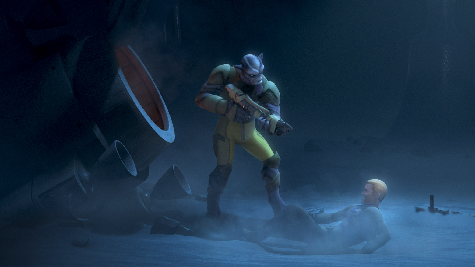 Not to mention him being probably the biggest thorn in the crew of the Ghost‘s side since he was introduced right at the start of the series. Zeb keeping him alive because he want’s to best him in. “a fair fight” is utter crap. They could have easily written it into a situation where Zeb was forced to keep him alive, like there was some task that absolutely required two people to have a chance at survival.