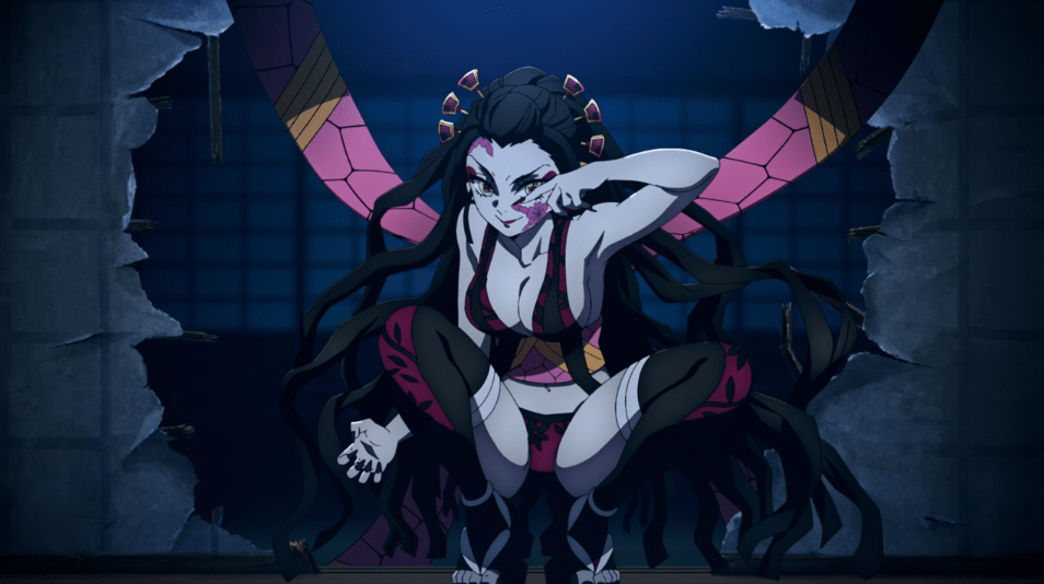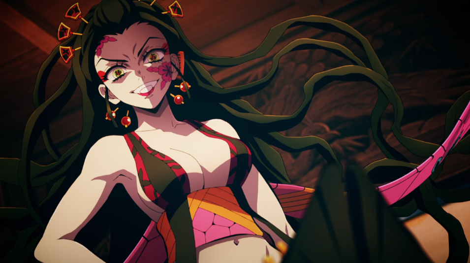 Also, I don’t feel like I can end this post without commenting on Daki’s outfit… I mean, it’s eye popping to say the least. In the past, I’ve been critical of shows that lean into fan service when it doesn’t feel necessary. This show though, it never feels like it’s leering at her as fan service. Sure, she’s not wearing much, but the camera and the characters look upon her no different than they did Azaka or Enmu.