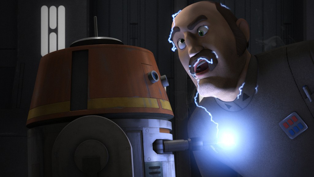 AP-5, after his restraining bolt is removed, is very quick to betray the Empire and start helping Chopper in his plan to lead the ship’s minimal crew into the cargo hold and then eject it into space. Which really tells me you shouldn’t fuck with droids, older models seem to have no problem with simply disobeying their programming and doing whatever they hell they like.