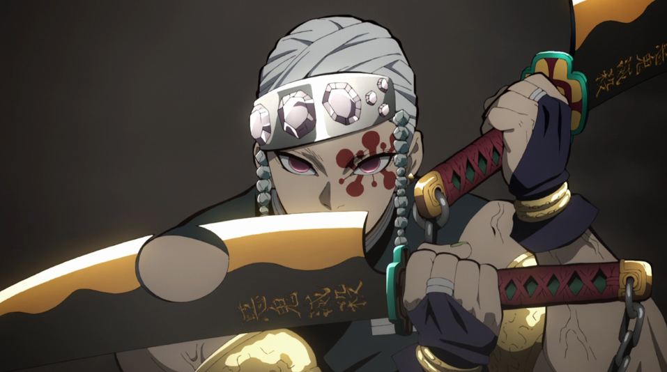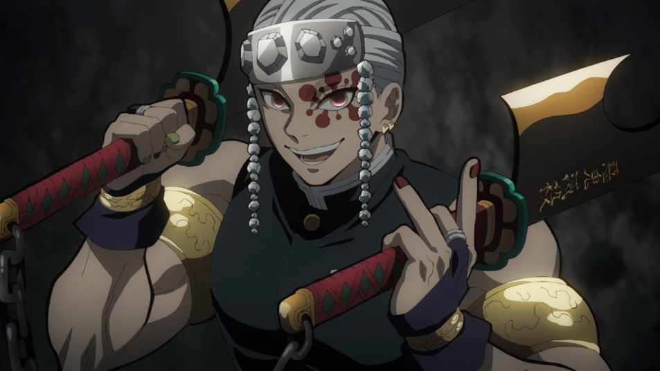 Being very Ninja, Uzui is able to dart around and quickly detect the sounds of fighting underground. Finally unsheathing his duel, chained together cleavers and striking the ground with massive force. Which leads us to another flash back that shows us how we got to this point.
