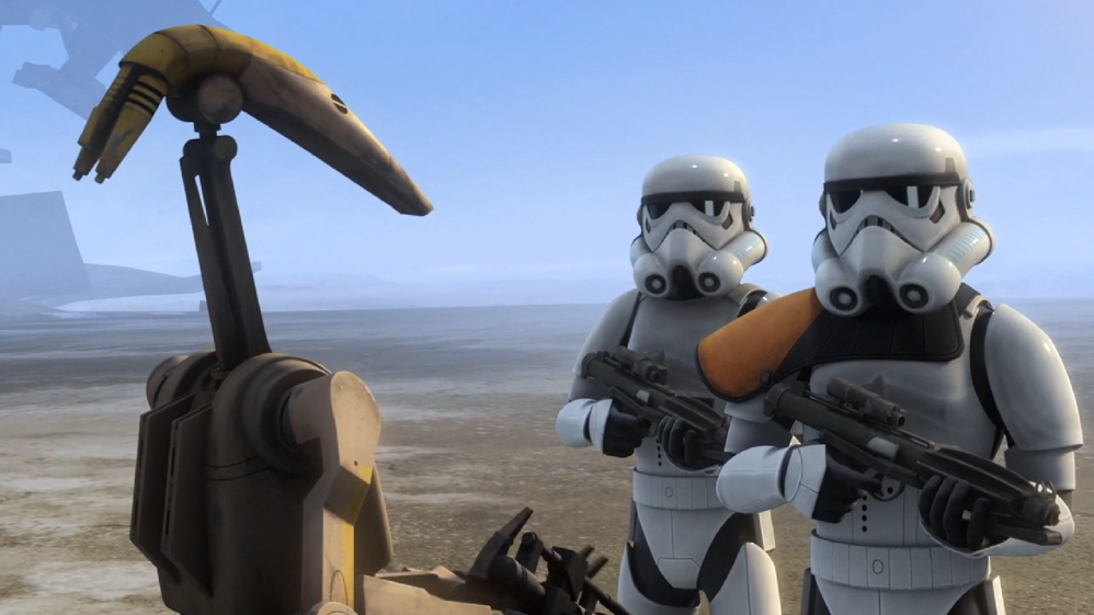 He correctly observes that neither the Clones or the Droids came out of the war victorious, both being decommissioned as soon as the Empire was declared. Seeing seven seasons of war between Clones and Droids talked into compromise by Ezra Bridger of all people feels a little laughable, especially considering the scars both Rex and Kanan carry from the conclusion of that war.