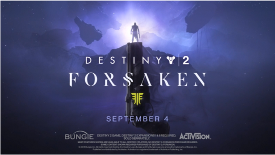 As if to keep their momentum going, Bungie put out a pre-recorded live stream in which their revealed their new expansion that’ll come out in September as the game rolls into its second year: Destiny Forsaken. I watched the stream a couple of times and thought I’d give my impressions considering I’m in a pretty deep Destiny hole right now.